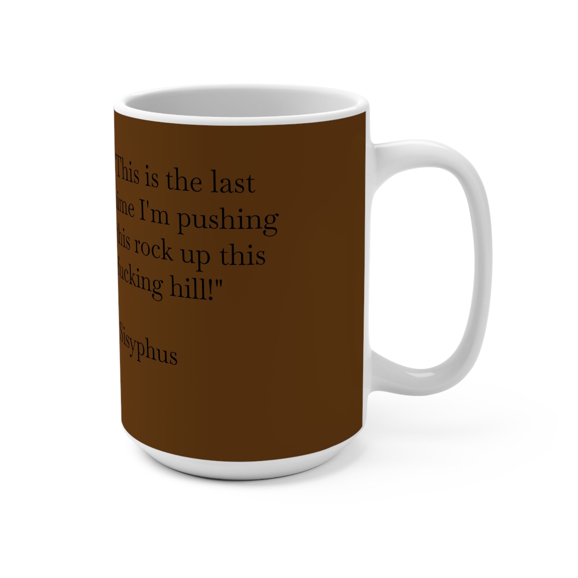 Humorous Sisyphus Quote Mug, 15oz Coffee Cup, Sisyphean Motivation Gift, Unique Home Decor, Funny Office Mug, Philosophical Drinkware