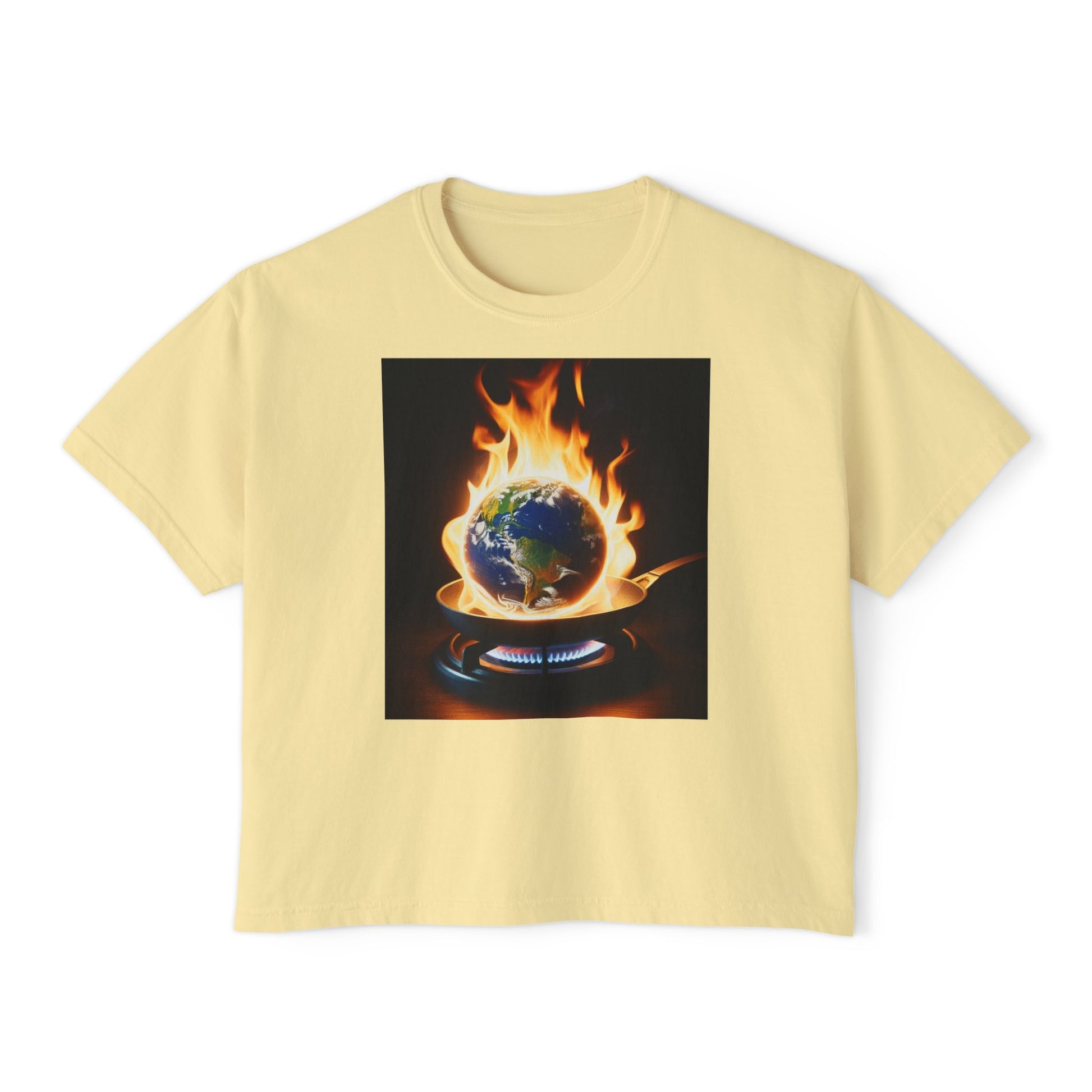 Women’s Global warming Boxy Tee - Earth on Fire Graphic Tee, Casual Top, Eco-Friendly Fashion, Earth Day Gift, Statement Shirt, Everyday Wear
