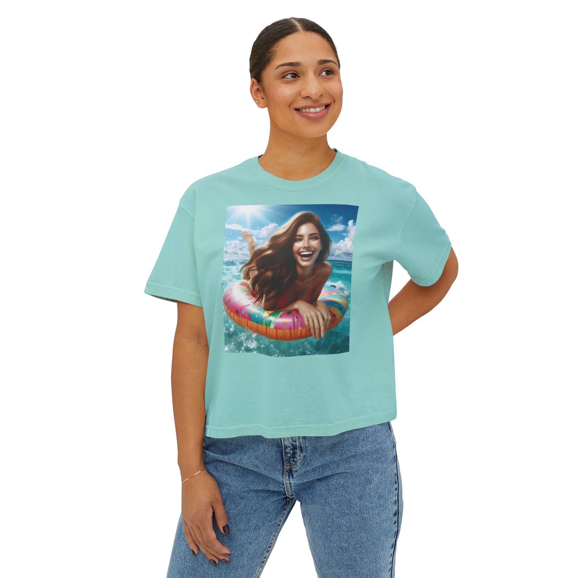 Women's Joy of summer-Boxy Tee - Fun Summer Vibes, Ideal for Beach Days, Casual Outings, Gifts for Her, Cute Graphic Tee, Lightweight Summer Top