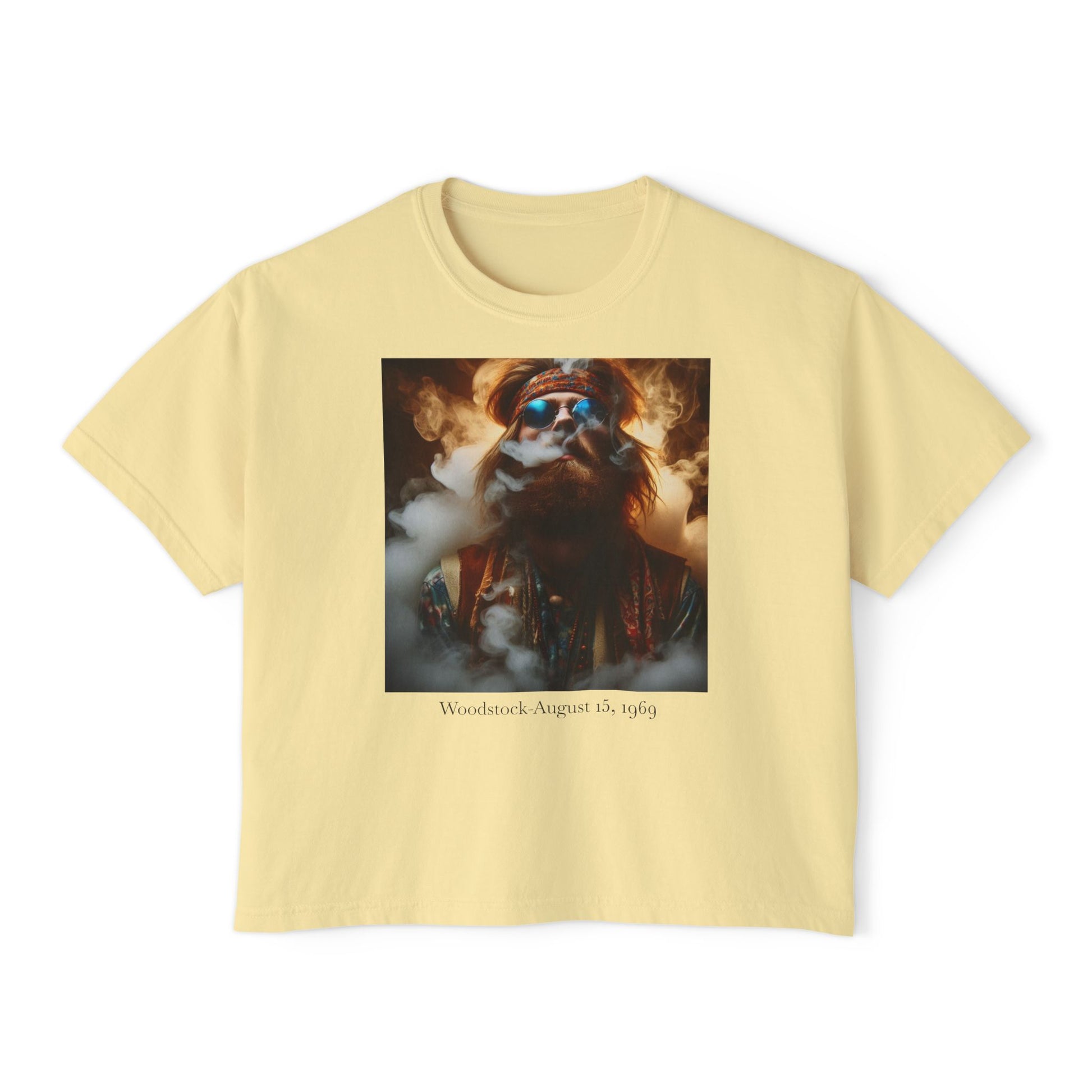 Women's Woodstock-Boxy Tee, Psychedelic Graphic Tee, Casual Summer Shirt, Boho Style Top, Festival Clothing